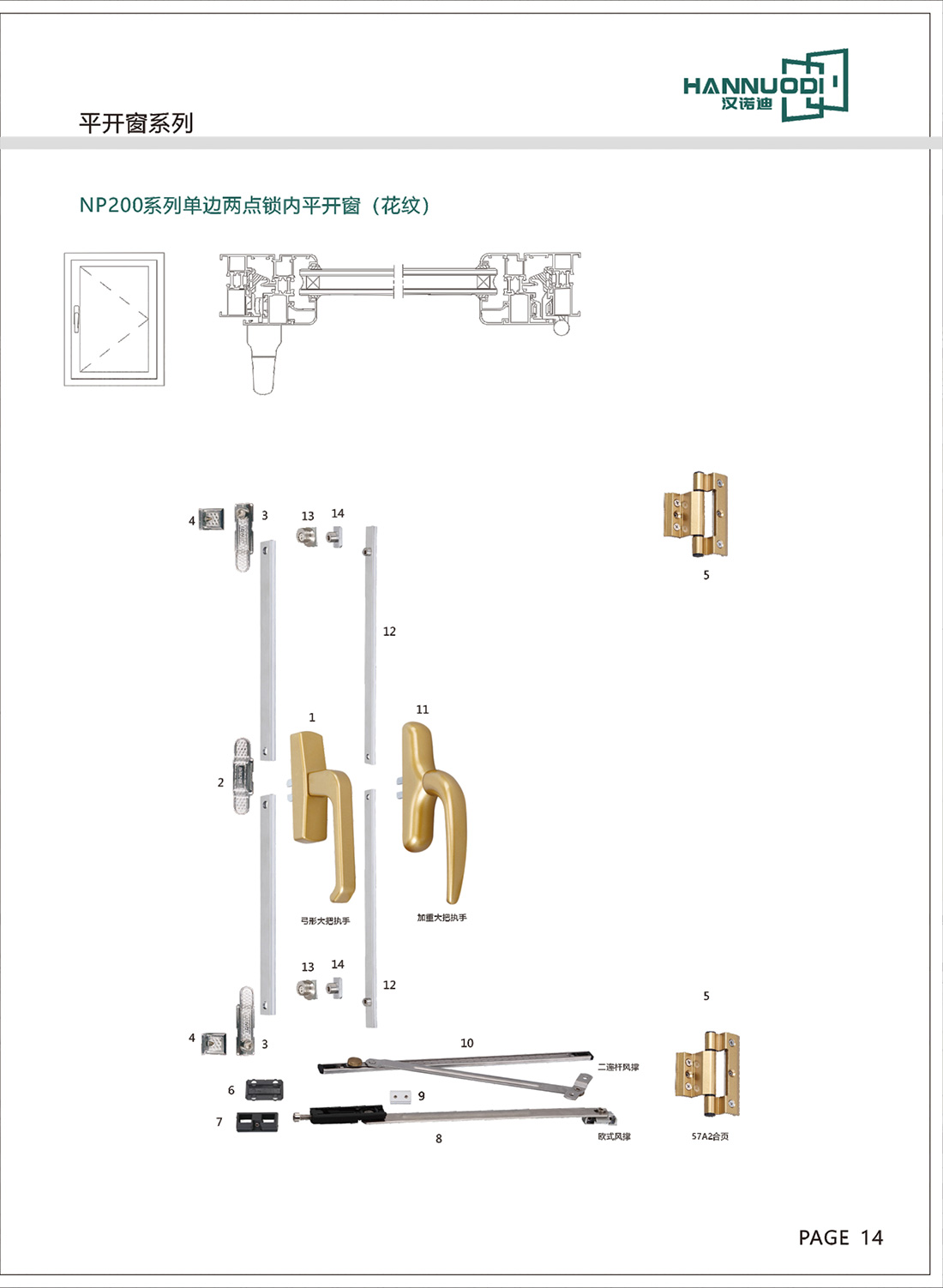 NP200系列單邊兩點鎖內平開窗(花紋):
